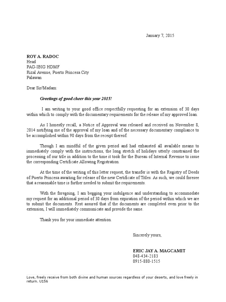 Application Letter To Request For Loan Date Extension